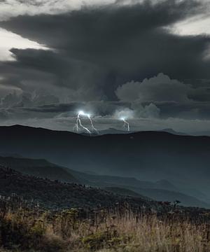 A scene of lightning and thunderheads from atop the Black Balsam Knob, NC.